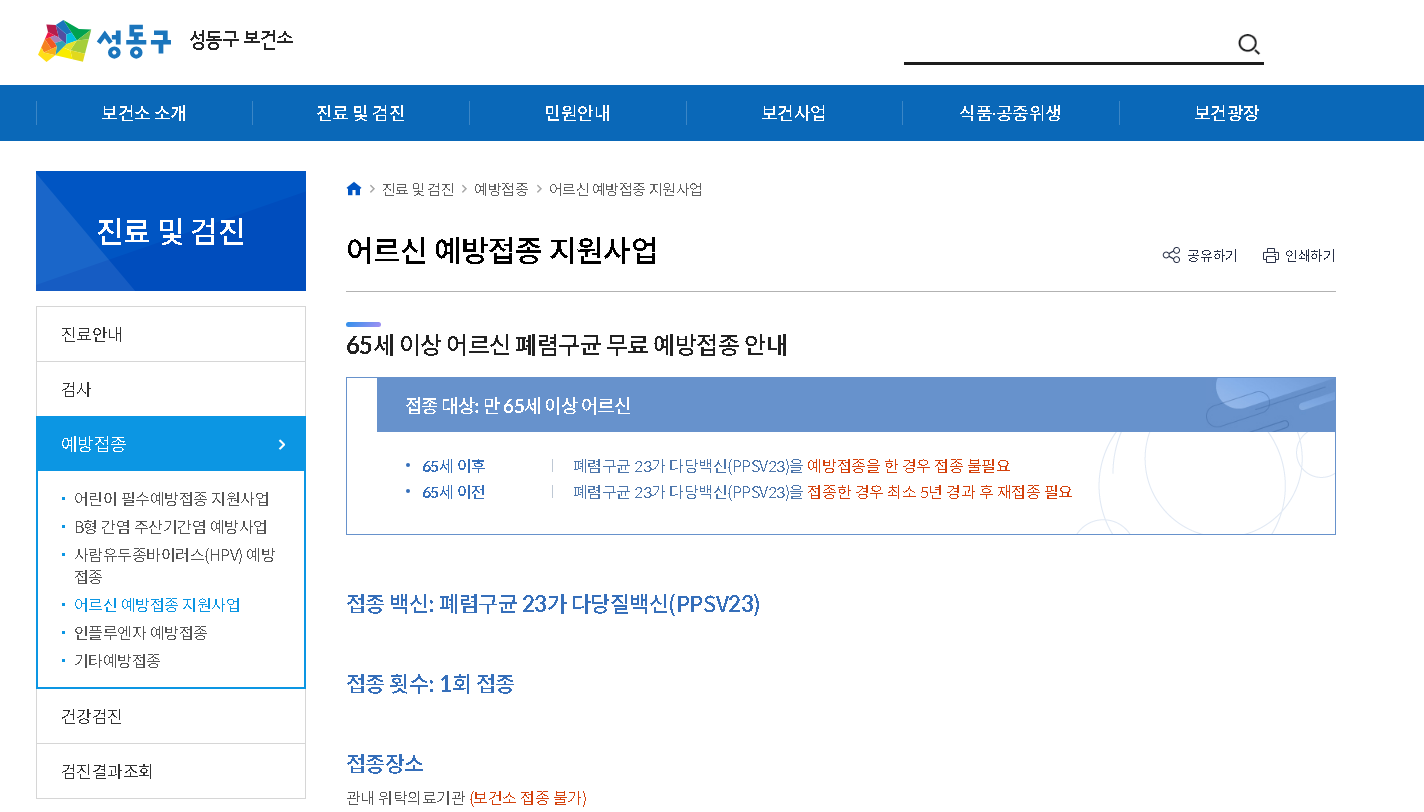 - 접종 장소: 지정 보건소·위탁 병의원 (예: 성동구 113개소)